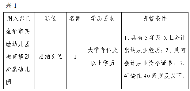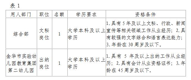 金華市教育投資發展有限公司因業務發展需要,面向社會公開招考2名工作人員。現將有關事項通知如下: