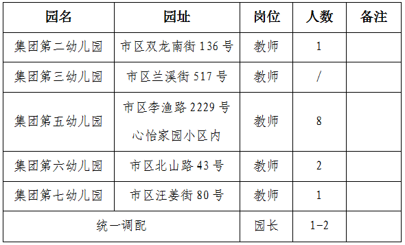 金華市實驗幼兒園教育集團是由市教投公司和金華市實驗幼兒園(市教育局直屬的唯一一所公辦幼兒園、浙江省一級幼兒園)聯合打造,集團下屬各幼兒園與市實驗幼兒園組成“教研共同體”,具有較高的教科研水平。現因發展需要,擬面向社會公開招聘幼兒